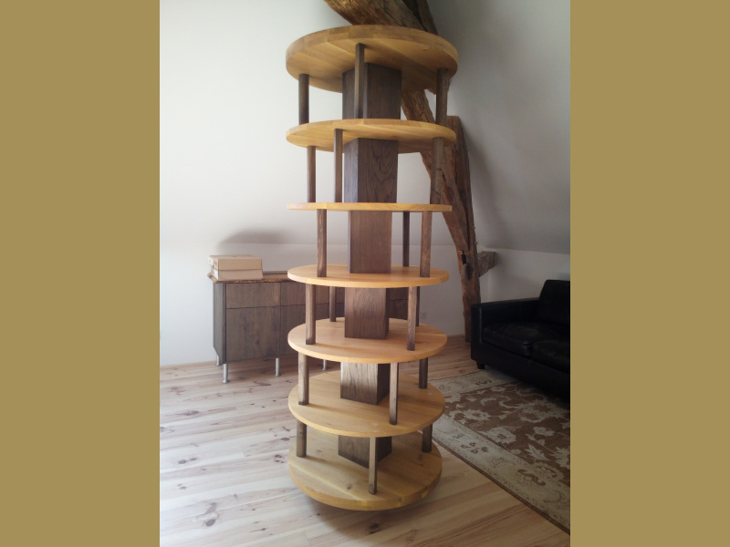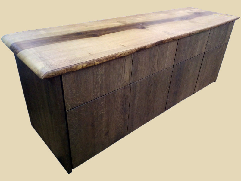 Corps de meuble en chêne de pays massif, huilé teinte charbon, plateau de magnolia massif.